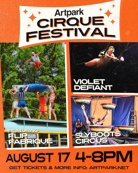Artpark's Cirque Festival will feature internationally acclaimed cirque troupe FLIP Fabrique and additional performers throughout Artpark's lower park (South Fourth Street entrance) from 4-8 p.m. Sunday, Aug. 17. This fun-for-all-ages festival combines multiple cirque performers and performances that Artpark fans have come to experience and love each summer in Lewiston.