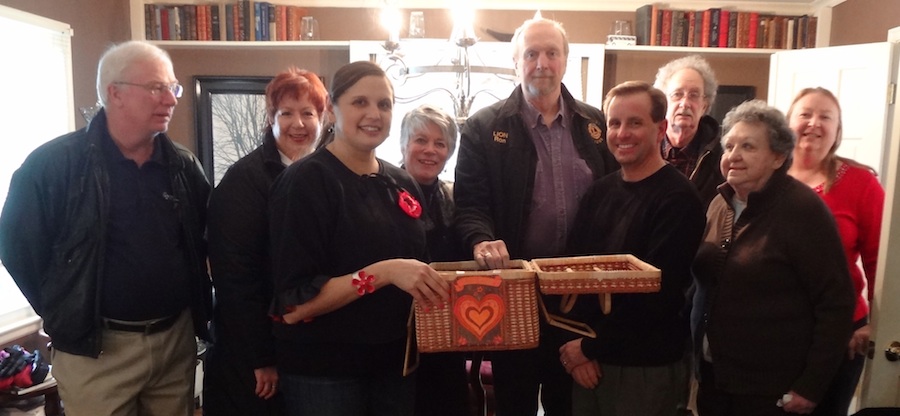 Jennifer Pauly, president of the Niagara River Region Chamber of Commerce, draws the $1,000 winner of the Lewiston Lions' annual Valentine's Day charity drawing.