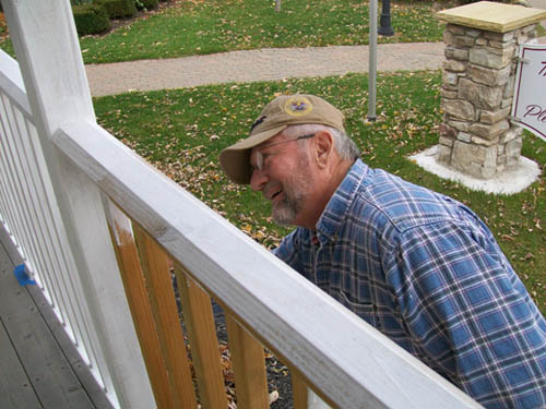 Bruce Sutherland, the Village of Lewiston's deputy mayor, was spotted Thursday painting the deck of the Welcome Center on Center and South Ninth streets.