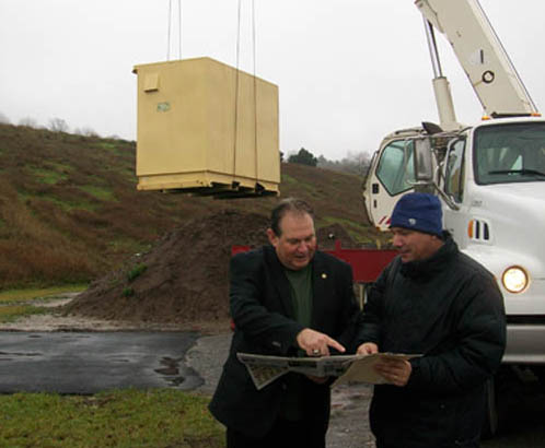 John Ceretto and Richard Pope were on hand as a new household hazardous waste disposal unit was installed in the Village of Lewiston.