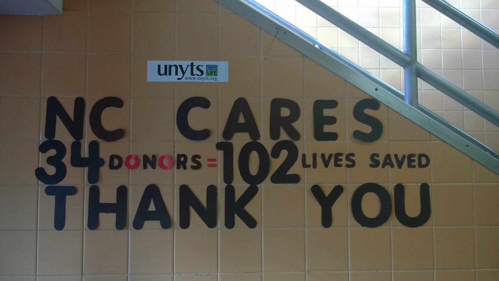 Niagara Catholic Jr./Sr. High School brought in Unyts' community blood service unit Nov. 6. Student organization, TAG, or "transplant awareness group," sponsored the blood drive.