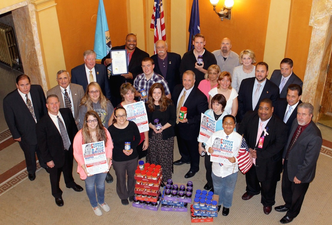 Legislator Rick Updegrove and Legislator Wm. Keith McNall welcomed the volunteers at the core of the "Peanut Butter & Jelly Drive" Tuesday night, presenting them with a proclamation declaring November "Peanut Butter & Jelly Month" in Niagara County.