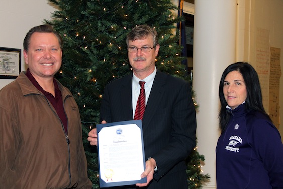 Niagara Falls has proclaimed Dec. 3, 2013, as #GivingTuesday - Niagara Falls' Day of Giving. The proclamation was made by Mayor Paul Dyster Tuesday afternoon, as he was joined at City Hall by representatives from Community Missions of Niagara Frontier Inc. and Niagara University, two local organizations taking part in the #GivingTuesday initiative.