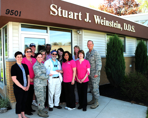 Dr. Stuart Weinstein recently presented a check from Advanced Dental to Niagara Falls Air Base Capt. Gina Pizziconi-Cupples.