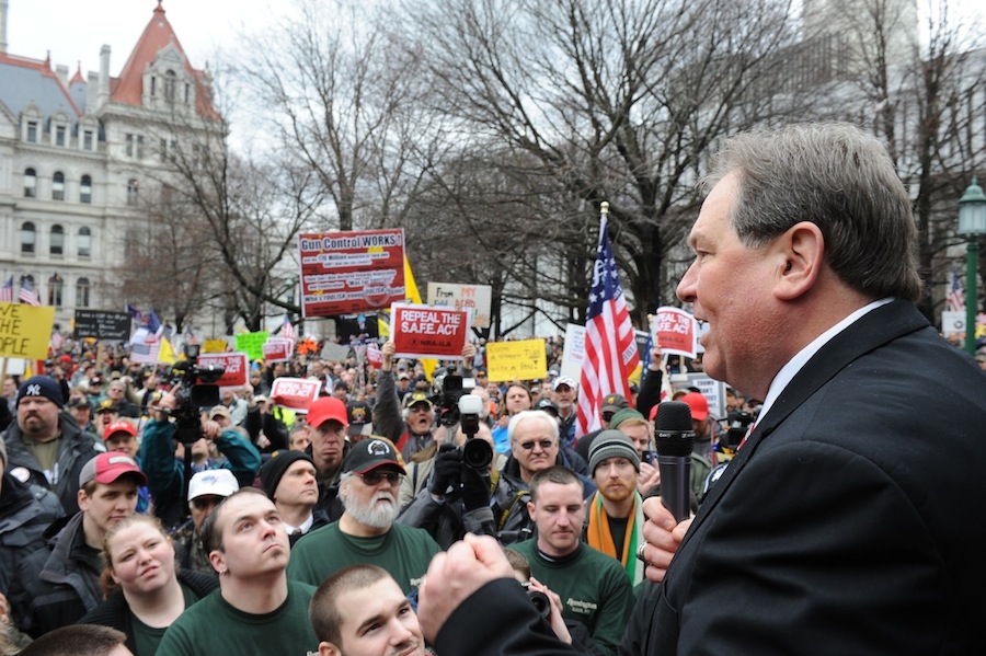 VIDEO: In front of a crowd of nearly 10,000 people in Abany, Assemblyman John Ceretto, R-I-C-Lewiston, called Thursday for the repeal of the controversial SAFE Act.
