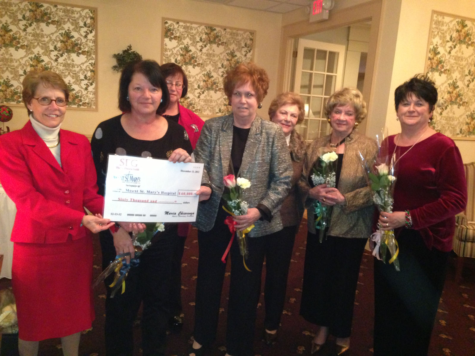 The St. Francis Guild, the auxiliary of Mount St. Mary's Hospital, recently presented hospital President and CEO Judith Maness, left, with a check in the amount of $60,000 from its 2012 fundraising efforts.
