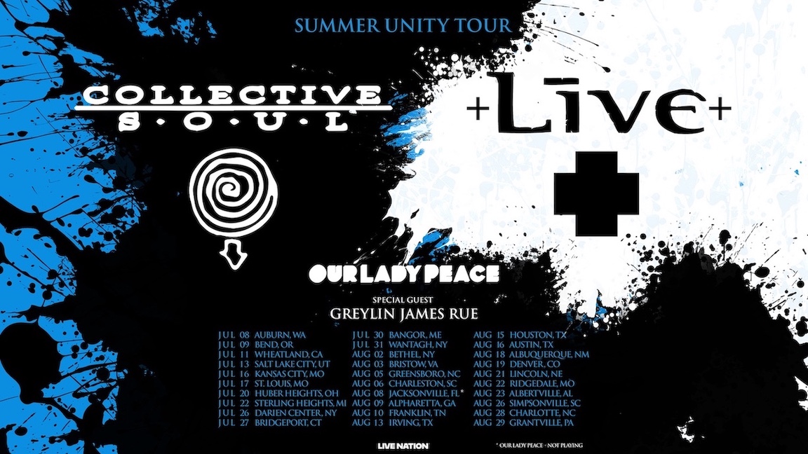 Today, Collective Soul and +LIVE+ announced their 2025 co-headlining "Summer Unity Tour." Produced by Live Nation, the 30-date tour includes a stop at Darien Lake Amphitheater in Buffalo on Saturday, July 26. Our Lady Peace and Greylin James Rue will be special guests for the show.