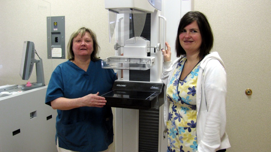 Technologists Debbie Perkins (left) and Cori Cosgrove prepare a new digital mammography system for use at Niagara Falls Memorial Medical Center's Summit Healthplex outpatient facility in Wheatfield.