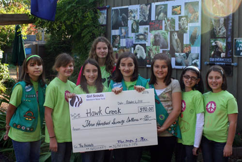 Girls from Girl Scout Troop 70294 presented Hawk Creek Wildlife Center with a check for $370.