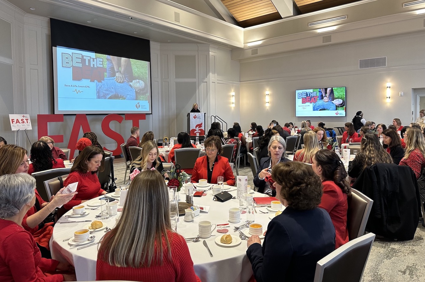 About 200 people decked out from head to toe in red gathered Tuesday at the Reikart House in Amherst for Buffalo's annual Go Red for Women luncheon to raise awareness and help fund the fight against heart disease and stroke, which claim the lives of more women than all forms of cancer combined.