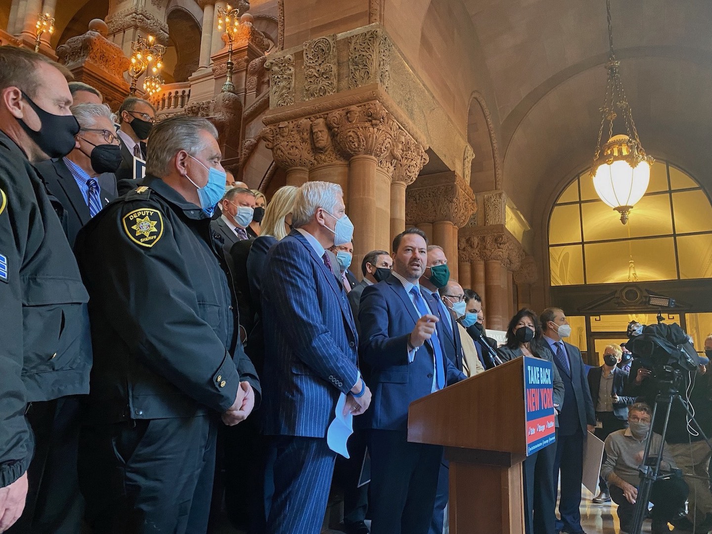 Senate Republican Leader Rob Ortt, Assembly Republican Leader Will Barclay, their fellow Republicans, and law enforcement professionals from around the state are calling for "an immediate restoration to public safety in New York."