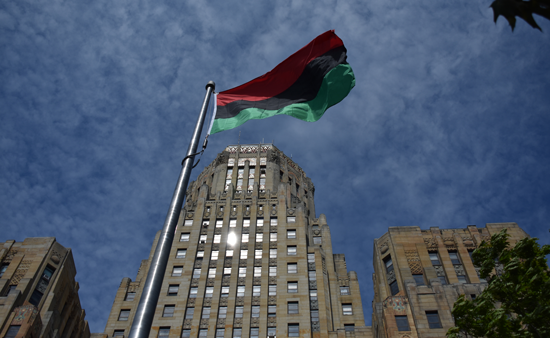 Juneteenth Festival organizers and others joined Mayor Byron Brown Monday in raising the Pan-African flag in Niagara Square in honor of Buffalo's 46th annual Juneteenth Festival.