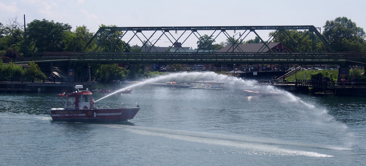 Early in the afternoon of Aug. 16, a parade of boats, led by the Grand Island Fire Co.'s fireboat, left the Buffalo Launch Club, headed down the Niagara River and the Erie Canal, and arrived at the Tonawandas Gateway Harbor Park.