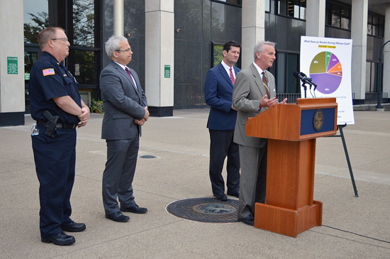 Erie County Executive Mark C. Poloncarz was joined Monday by Commissioner of Central Police Services James Jancewicz, Director of the Erie County STOP-DWI Office John Sullivan, and President of the Erie County Chiefs of Police Association Greg Wickett to provide an update on driving while intoxicated arrests in Erie County in 2019. Their goal also was to promote safe driving around Fourth of July weekend.