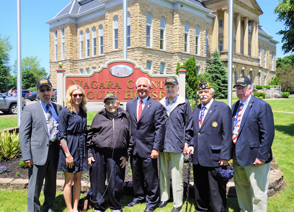 In honor of National Flag Day, Niagara County Clerk Joseph A. Jastrzemski presented a flag-raising ceremony on Friday, unveiling three new flagpoles in which U.S. military veterans who served in World War II, Korea, Vietnam and the Middle East raised the American, state and county flags in front of the county courthouse.
