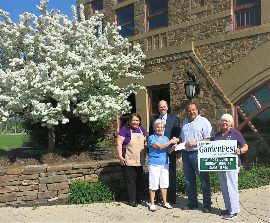 Lewiston Garden Club Treasurer Barbara Carter accepted a corporate sponsor donation from the Niagara Falls Bridge Commission for Lewiston GardenFest 2018, which is scheduled for June 16 & 17. GardenFest representatives thanked the Bridge Commission for its ongoing support of the Lewiston Garden Club and beautification efforts.