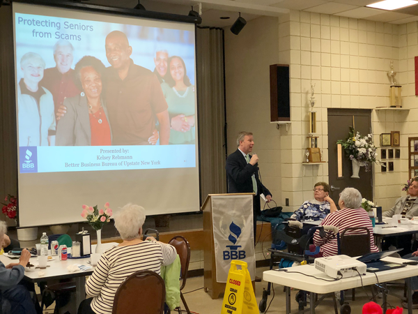 New York State Sen. Chris Jacobs partnered with AT&T and Better Business Bureau of Upstate New York to host a free senior scam prevention and cyber security seminar on Friday at the Grand Island Golden Age Center. The event was free and open to the public. It was part of a series of senior events held statewide. More than 75 senior citizens attended the event.