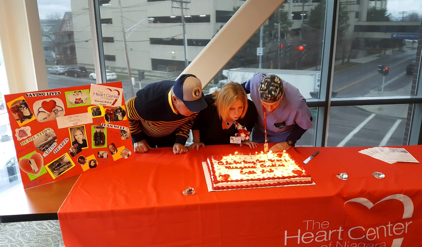 Emergency medical services personnel from AMR, Mercy EMS and the Niagara Falls Fire Department gathered recently at The Heart Center of Niagara to celebrate the one-year anniversary of Niagara County's first and only cardiac catheterization laboratory.