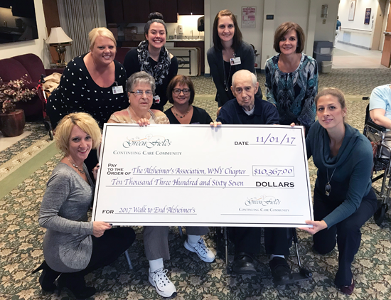 Residents at The GreenFields Continuing Care Community in Lancaster recently presented a check for more than $10,000 to the Alzheimer's Association of WNY.