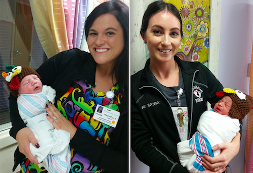 Babies born Wednesday at Niagara Falls Memorial Medical Center received a very special Thanksgiving welcome - crocheted Thanksgiving turkey caps.