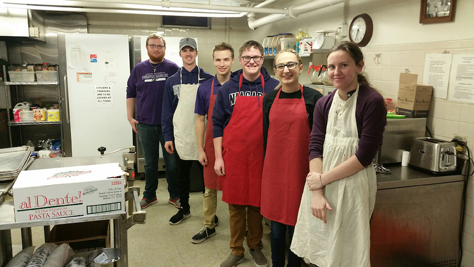 While most college students were sound asleep Tuesday morning, Justin Crawford woke up early to volunteer at Community Missions of Niagara Frontier. By 6:15 a.m., the Niagara University junior and several of his peers were clad in hairnets and gloves, cooking breakfast for guests of the Niagara Falls-based nonprofit, which serves homeless individuals and families.