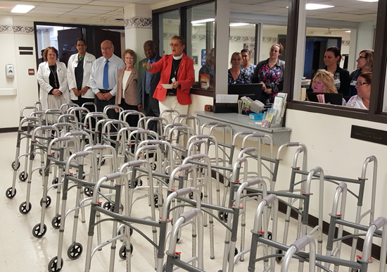 The Rev. Canon Cathy Dempesy-Sims, canon for connections in the Episcopal Diocese of Western New York, visited Niagara Falls Memorial Medical Center's Cardiac/Stroke Care Unit on Tuesday to bless the first of 150 new patient walkers being placed into use at the hospital.