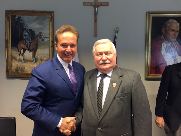 Congressman Brian Higgins met with the former president of Poland, Lech Walesa, in Gdansk while traveling with a congressional delegation abroad last week. Higgins, a member of the European Union Caucus, spoke with Walesa regarding domestic and international affairs.