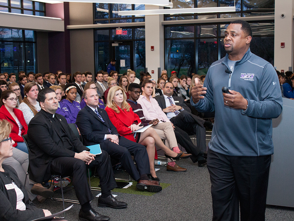 Early on in his presentation Tuesday night at Niagara University, NFL Executive Vice President of Football Operations Troy Vincent asked attendees to put their phones away. His intention was to create a safe space for dialogue to take place on a topic that he's dedicated much of his adult life advocating for: ending domestic violence.