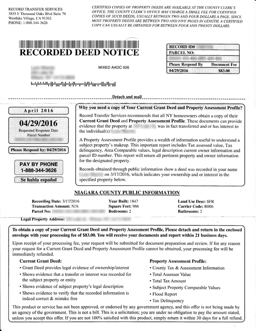 Niagara County Clerk Joseph Jastrzemski is warning of the re-emergence of a scam designed to rip off Niagara County's homeowners, and urging county property owners to disregard the letter's pricey solicitation.