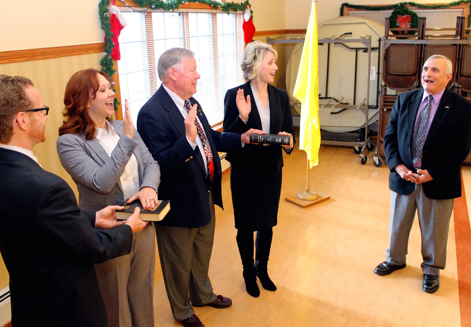 In Wheatfield, in a triple swearing-in ceremony, former Niagara County Legislature Chairman Bill Ross administered the oath of office to his successor in the County Legislature, Legislator Becky Wydysh of Lewiston, as well as re-elected incumbents David E. Godfrey and Kathryn Lance.