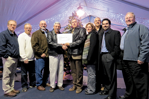 The Village of Lewiston Board of Trustees presented the Town of Lewiston Council with a check for $5,000 Wednesday to support the Lewiston Family Ice Rink. Following the presentation inside the refurbished warming tent, elected leaders cut a ribbon to officially begin the new season of outdoor skating at Academy Park.