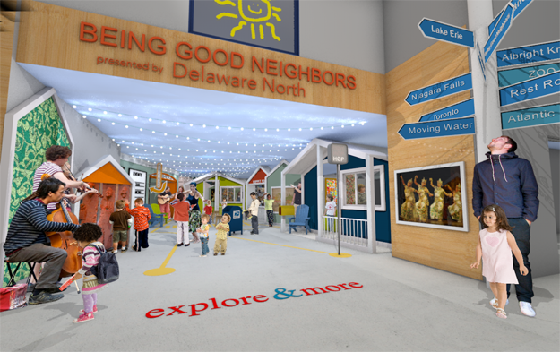 Explore & More Children's Museum today announced a $1 million capital gift from Delaware North for the "Play It Forward" campaign in sponsorship of the "Being Good Neighbors" educational play zone in the new museum at Canalside, set to open in the second half of 2018.