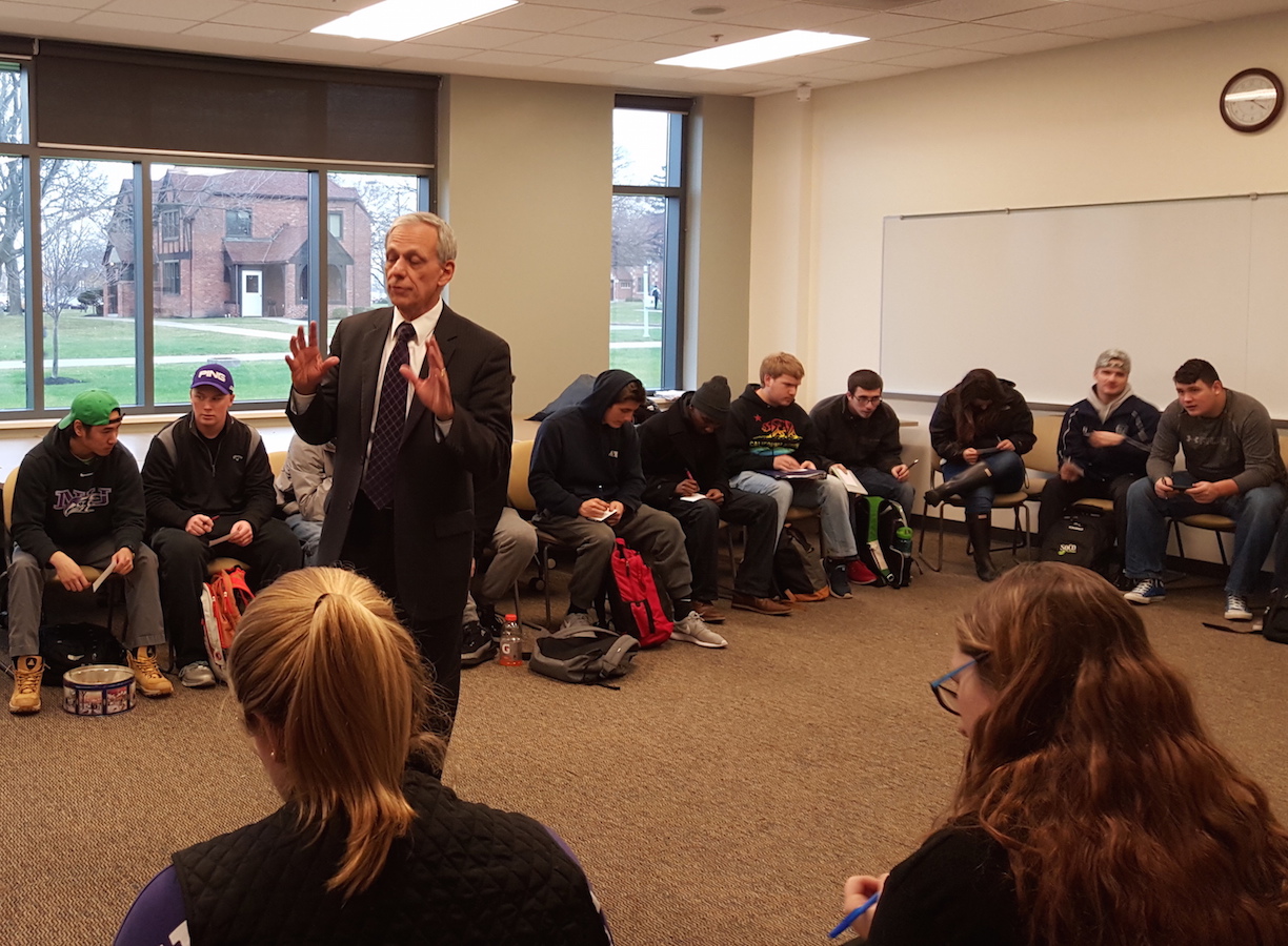 Mitchell Alegre, professor of management at Niagara University, has developed a whole new way to teach a college course. And it involves a circle.