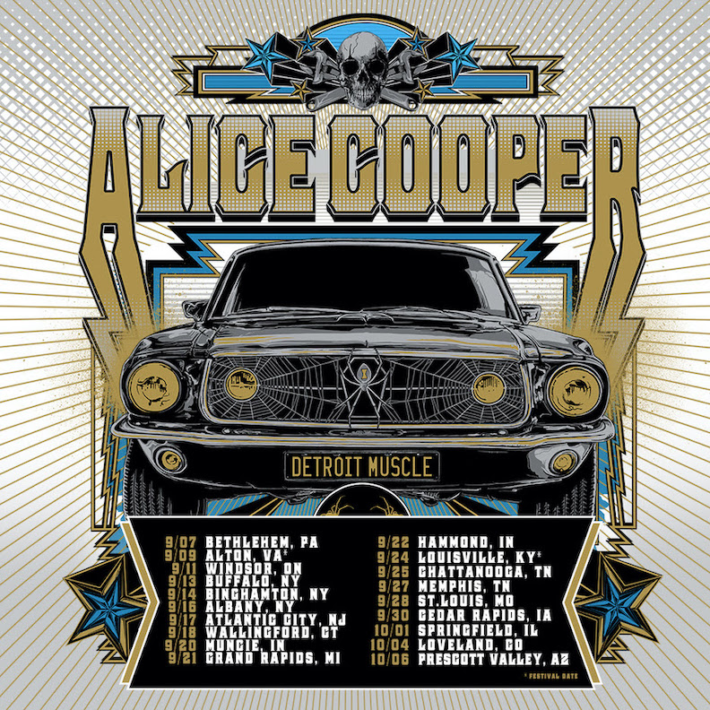 Alice Cooper has announced his fall 2022 "Detroit Muscle" tour. After wrapping successful and uninterrupted fall 2021, and both winter and spring 2022 runs, and following a U.K./European tour May 23 through July 6, Cooper will be back on the road in September. There is a mix of headline shows and festival appearances on his docket.