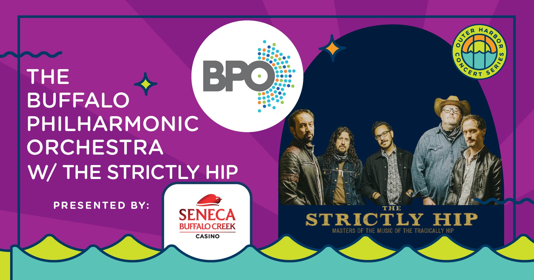 The Rich Entertainment Group and Buffalo Waterfront Management Group announce The Buffalo Philharmonic Orchestra with The Strictly Hip will play the Seneca Casinos Outer Harbor Concert Series at the Lakeside Event Lawn presented by the Upstate Honda Dealers. Gates open at 6:30 p.m. July 22.