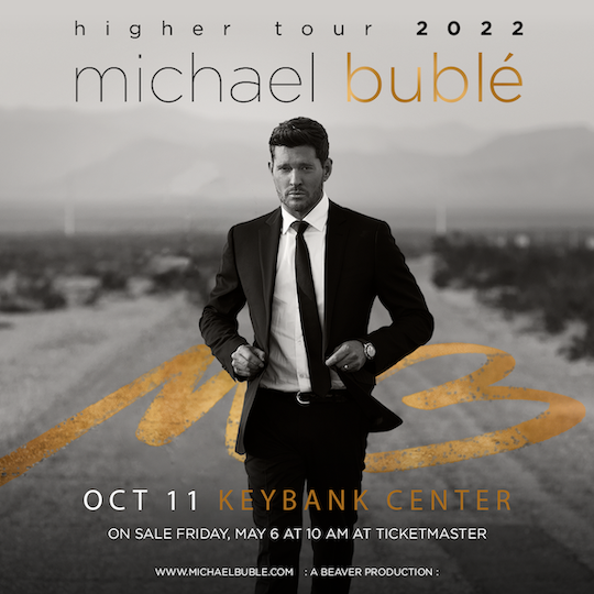Grammy Award-winning, multi-Platinum superstar entertainer Michael Bublé will be back on the road with his brand-new "Higher" tour - and he's coming to KeyBank Center on Oct. 11. Tickets will go on sale at 10 a.m. Friday, May 6, via Ticketmaster.