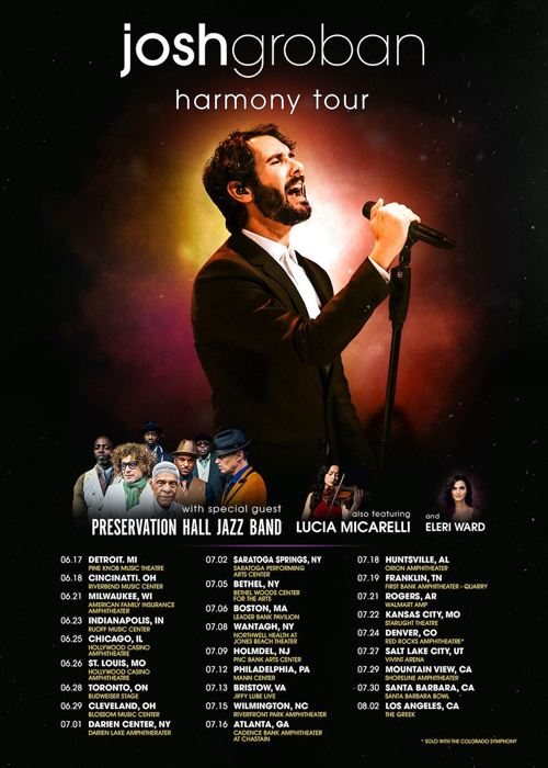 On Monday, multi-Platinum award-winning singer, songwriter and global superstar Josh Groban announced his "Harmony Summer" 2022 tour. This show will be the first time he has played songs for a live audience off his latest album, "Harmony," released in November 2020 via Warner Records.