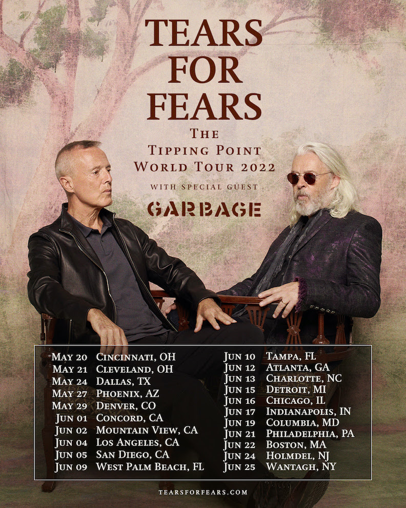 Iconic British duo Tears For Fears announced the first leg of "The Tipping Point World Tour" in 2022, with Garbage as support. Kicking off in Cincinnati on May 20, the tour will see the band performing in more than 20 cities across North America before capping off with their last show in Wantagh on June 25. The run will mark Tears For Fears' first U.S. tour since 2017.