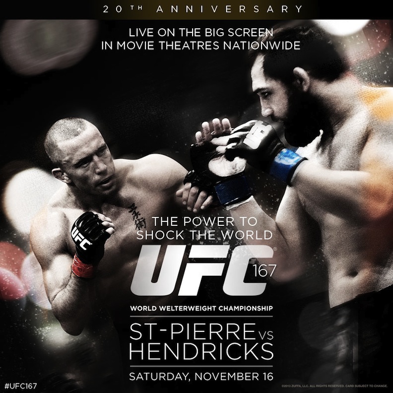The Ultimate Fighting Championship returns to U.S. movie theaters nationwide on Saturday, Nov. 16, at 10 p.m. with UFC 167: St-Pierre vs. Hendricks.