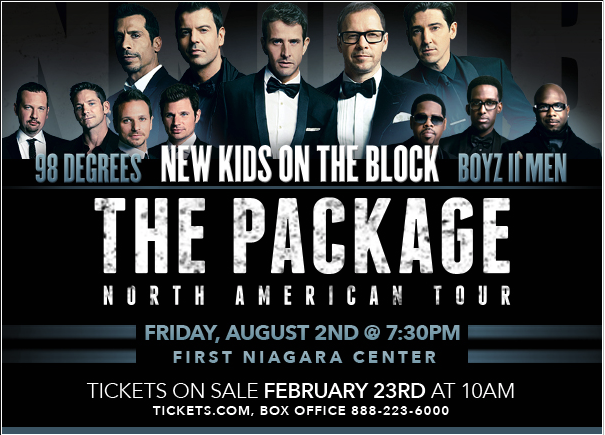 "The Package Tour," featuring New Kids on the Block with special guests 98 Degrees and Boys II Men, is coming to First Niagara Center on Friday, Aug. 2, at 7:30 p.m.