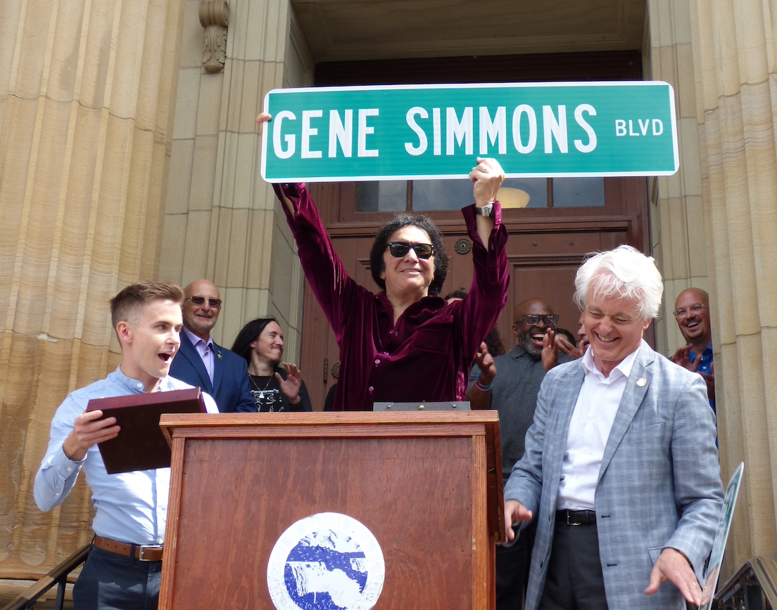 Rock 'n' roll royalty, Gene Simmons, visited Niagara Falls on Sunday. He keynoted a press conference outside of the Top of the Falls Restaurant on Goat Island. After speaking about his Rock Steady Sodas partnership with Paul and John Janik and Chris Haick, he traveled to City Hall, where he was given two keys to the city: One from Niagara Falls Mayor Robert Restaino, and a second from North Tonawanda Mayor Austin Tylec.