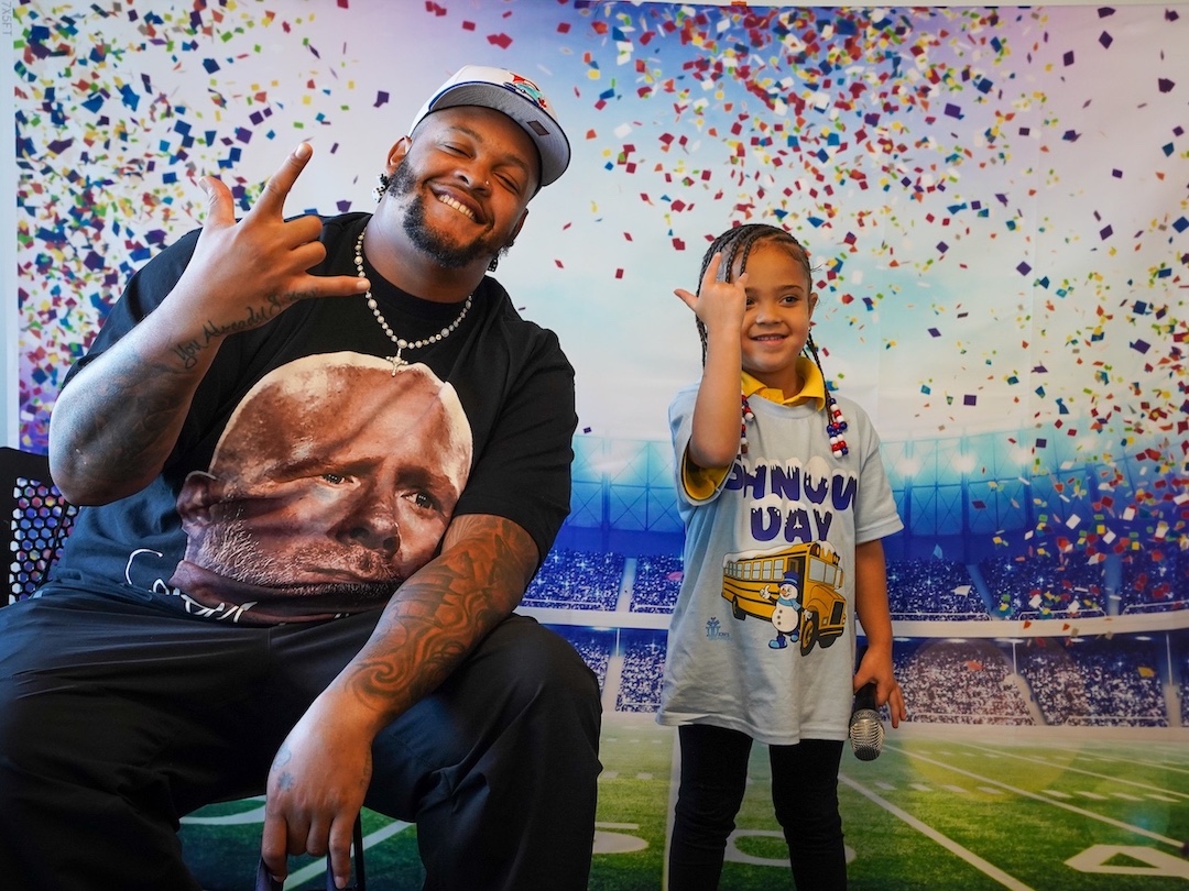 The Aquarium of Niagara welcomed Buffalo Bills offensive lineman Dion Dawkins and 18 kindergarten students from Ms. Jenkins' class at the Charter School for Applied Technologies (CSAT) Tuesday morning as part of Dion's Dreamers' "Shnow Day" field trip program.