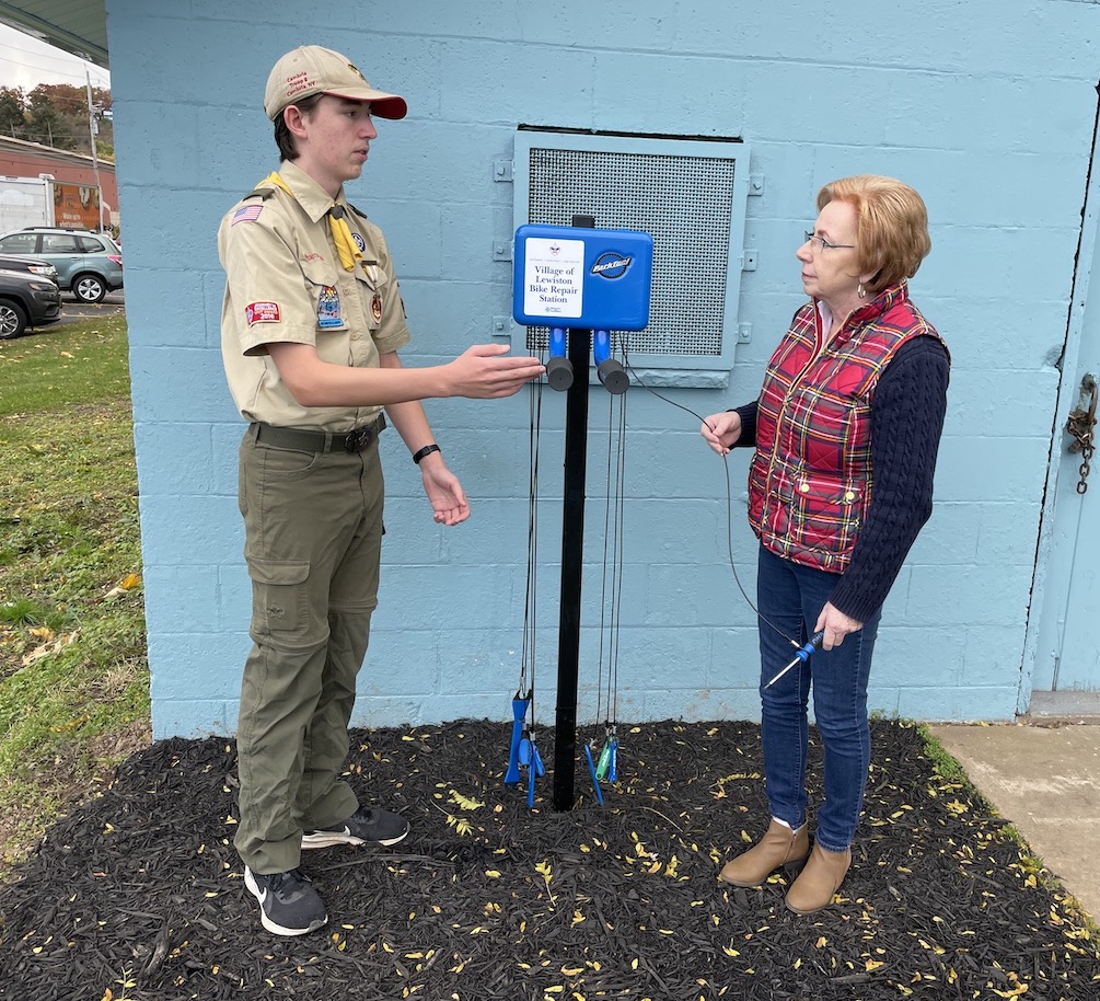 Cambria Troop 8's Jack Olszewski recently presented the Village of Lewiston Board with a Boy Scouts of America Eagle Scout proposal to install a new bicycle repair station behind the Niagara River Region Chamber of Commerce on Center Street.