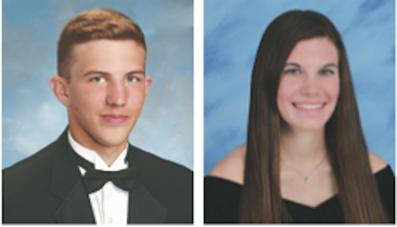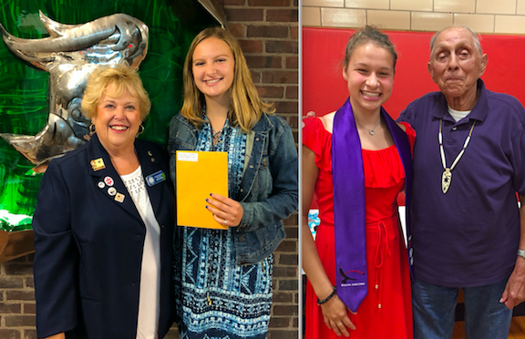 The Lewiston Community Lions recently awarded high school scholarships to Abby Cullen of Lewiston-porter, pictured with President Sheila Zuhlke, and Kelsey Lachowski, a member of Tuscarora Indian Reservation shown with Turtle Clan Chief Leo Henry.