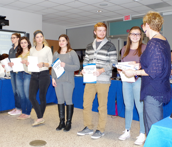 Nine Grand Island High School students were honored at Monday's Grand Island Board of Education meeting for earning one of the highest awards for DECA seniors.
