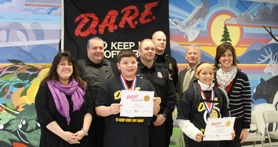 The fifth-graders at Niagara-Wheatfield's Tuscarora Native American School recently accepted their D.A.R.E. (Drug Abuse Resistance Education) diplomas from members of the Lewiston Police Department and Town of Lewiston Supervisor Dennis Brochey.