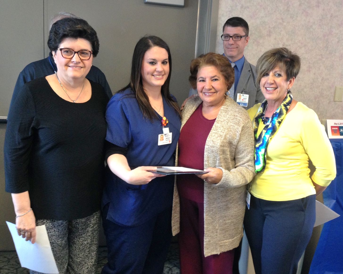 Lindsey Bradigan, a nursing attendant, was presented with a $1,000 scholarship by the St. Francis Guild to advance her education in nursing. The presentation was part of Mount St. Mary's Hospital and Health Center's celebration of national Nurses' Week.