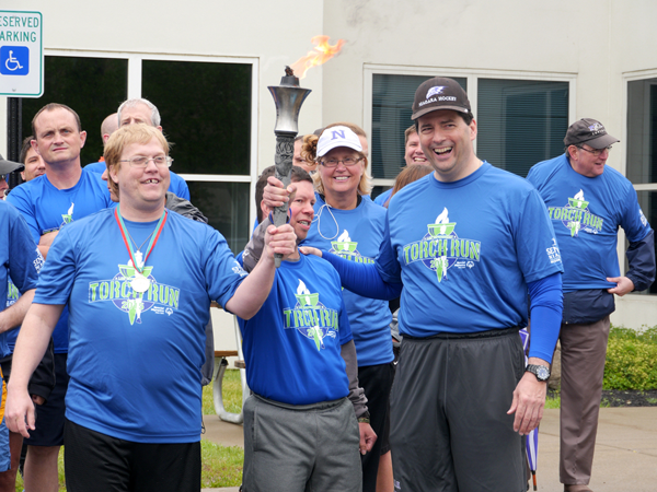 The Rev. James J. Maher, C.M., president of Niagara University, ran four miles Monday afternoon in tandem with local law enforcement personnel, Special Olympics athletes and NU students and employees in support of the Law Enforcement Torch Run for Special Olympics.