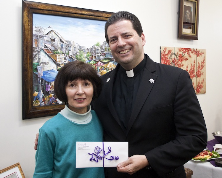 Roxanne Cardone, office coordinator for the Center for Events & Management Development at Niagara University, was named NU's Outstanding Employee of the Quarter. Cardone, a Lewiston resident, was presented with the award by the Rev. James J. Maher, C.M., Niagara president (as pictured).