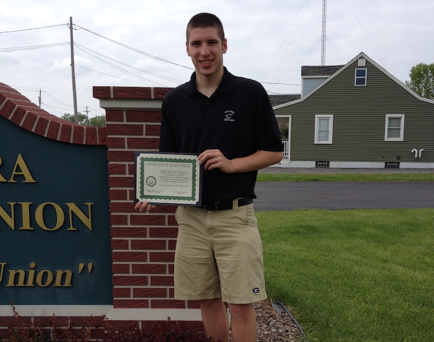 Congratulations to Benjamin R. Chatley, credit union scholarship winner of $500 from the Greater Niagara Federal Credit Union. Chatley will attend SUNY Brockport for history education.